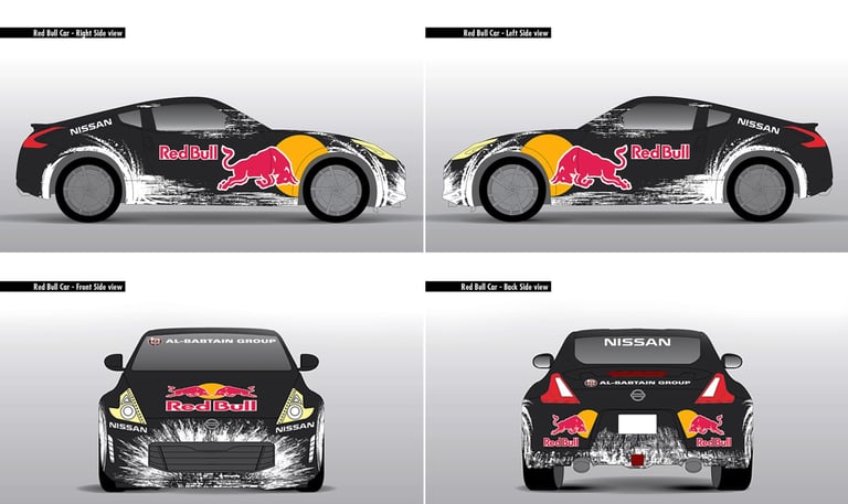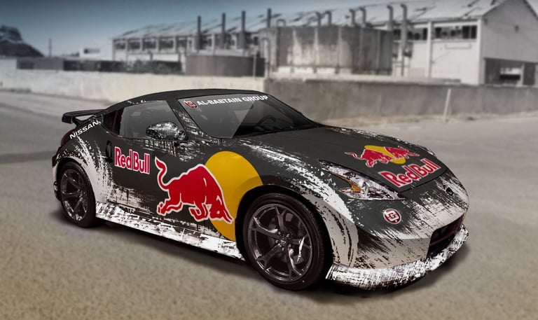 In this challenge, one of my crucial roles as Senior Graphic Designer was to create a visually striking and performance-oriented car wrap design for the Nissan 370Z wrapping. The wrap was crafted to blend style with functionality, symbolizing the fusion of human ingenuity and cutting-edge automotive technology. Bold graphics and colours were strategically chosen to reflect the spirit of the competition, ensuring the Nissan 370Z stood out on the deserted streets of Failaka Island. The adaptability of the car wrapping contributed to the car's functionality in navigating the challenging terrains, enhancing the overall spectacle of the showdown.